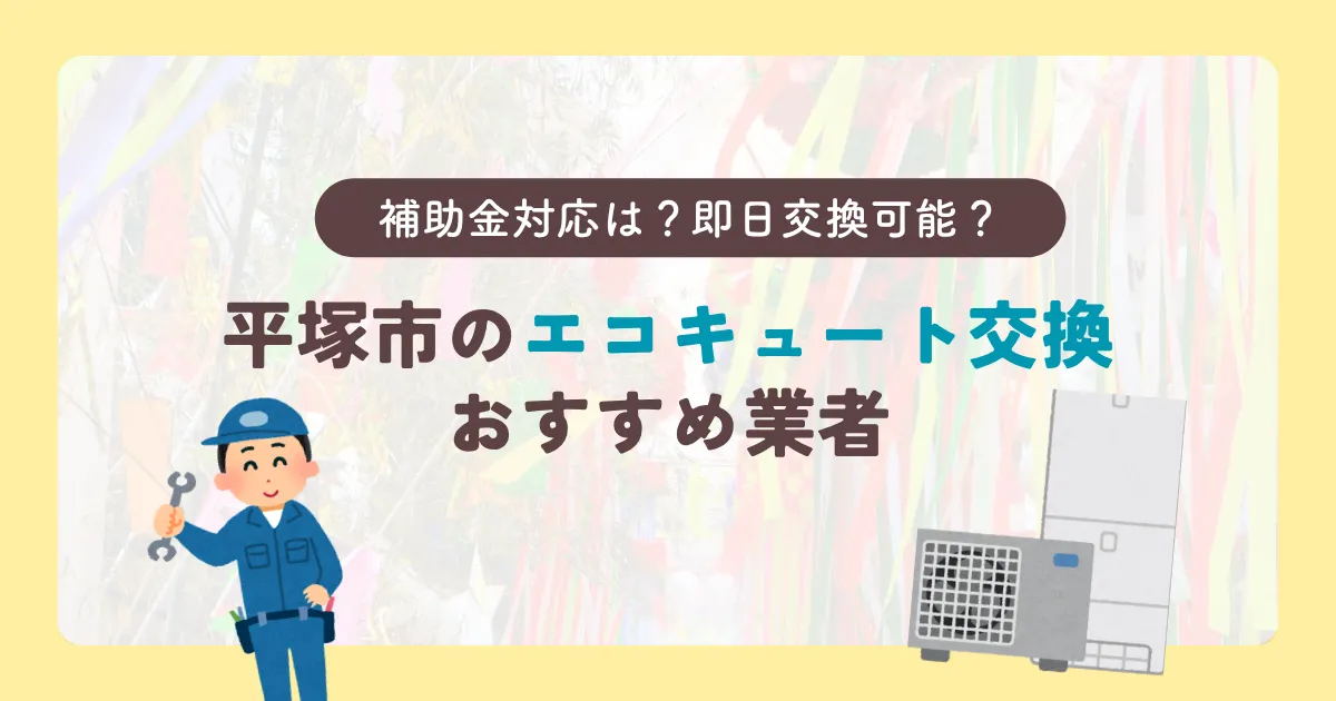 この記事では、平塚市の地域事情に詳しいおすすめエコキュート業者をランキング形式でご紹介!平塚市の費用相場や補助金活用法を合わせて、わかりやすくお伝えします。