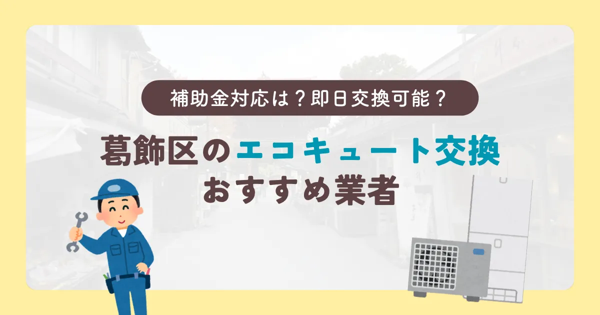 この記事では、葛飾区の地域事情に詳しいエコキュート交換の優良業者の選び方と、葛飾区民が使える補助金の活用法をお伝えします。