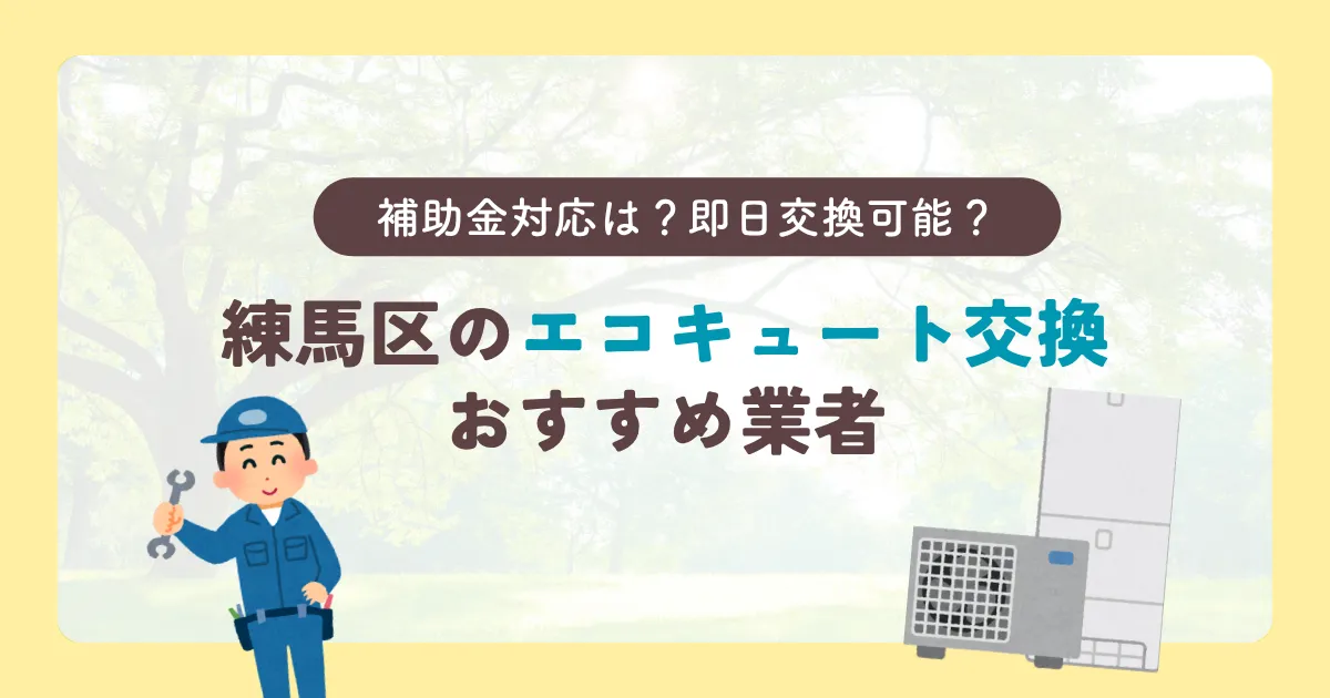 この記事では、練馬区に対応する優良エコキュート業者おすすめ3選と、練馬区の地域の特性をふまえた注意点、費用相場なども合わせてご紹介します。