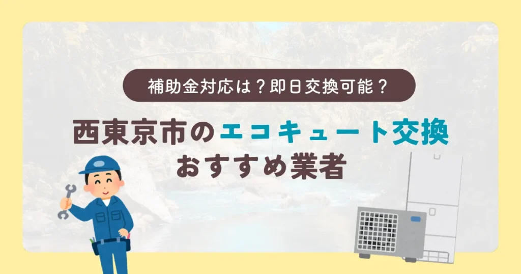 西東京市でエコキュート交換が安い業者を徹底比較。武蔵野台地の地盤特性・冬の凍結リスク・東京ゼロエミポイント活用法・おすすめ業者5社の比較を住宅設備アドバイザーが解説します。